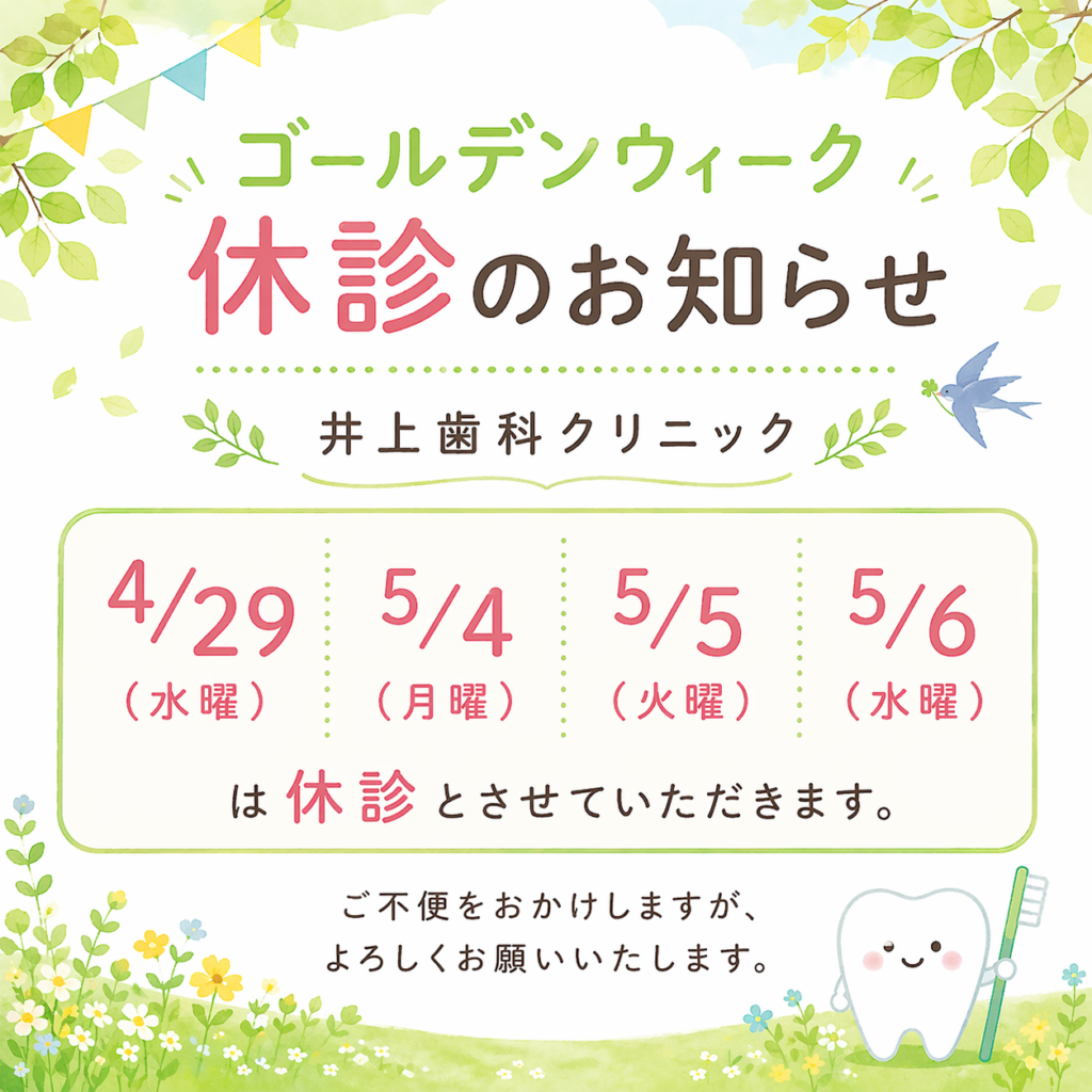 平素より井上歯科クリニックをご利用いただき、誠にありがとうございます。